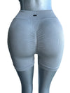 La arquitectura seamless de este conjunto, en un color blanco puro (o gris claro), moldea tu figura con una suavidad excepcional, presentando una textura estriada de alta calidad.