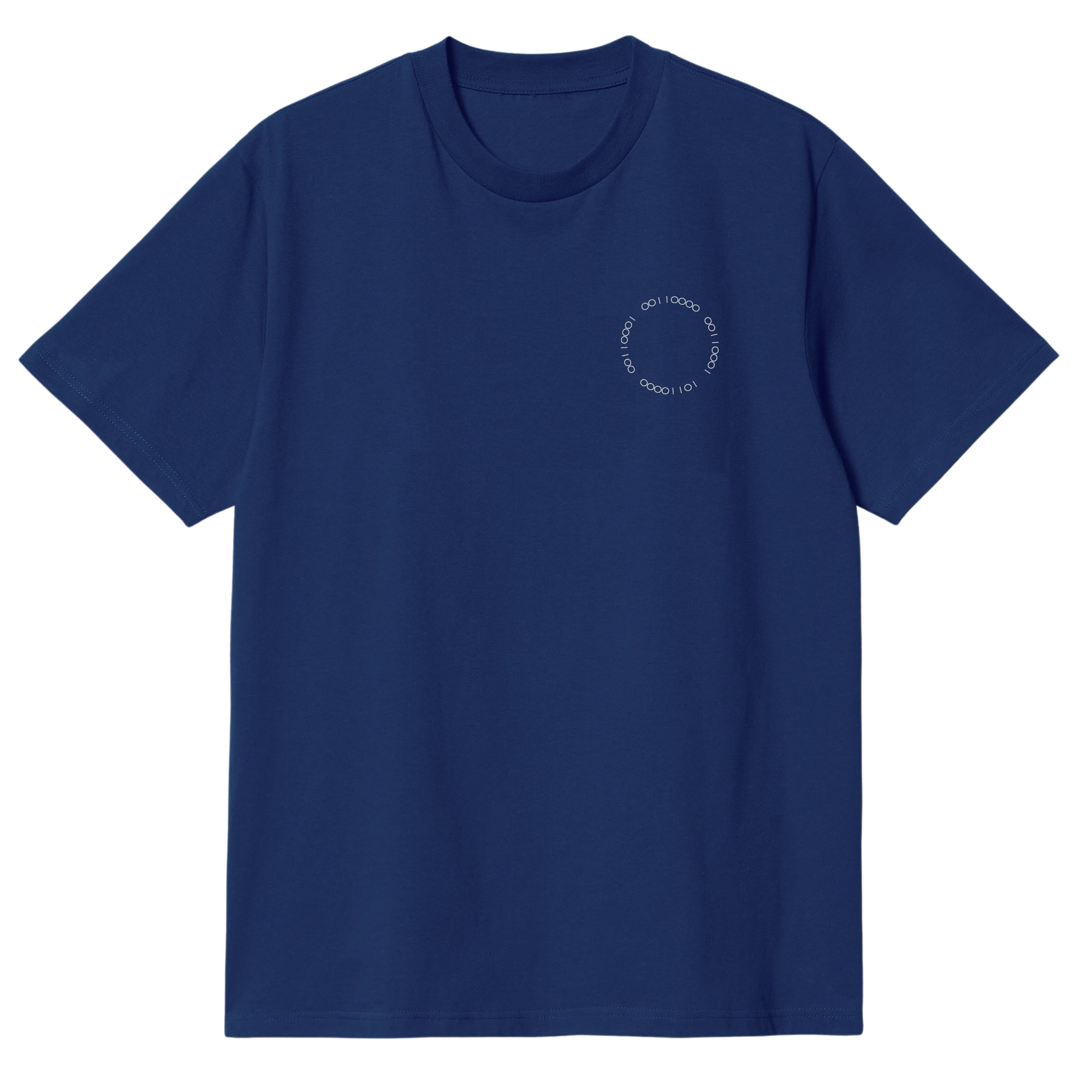 Camiseta en algodón pima 250 gr con nuestro logo escudo código binario icónico que forma parte de la esencia de la marca 101°. Corte clásico tallaje standard, con caida...